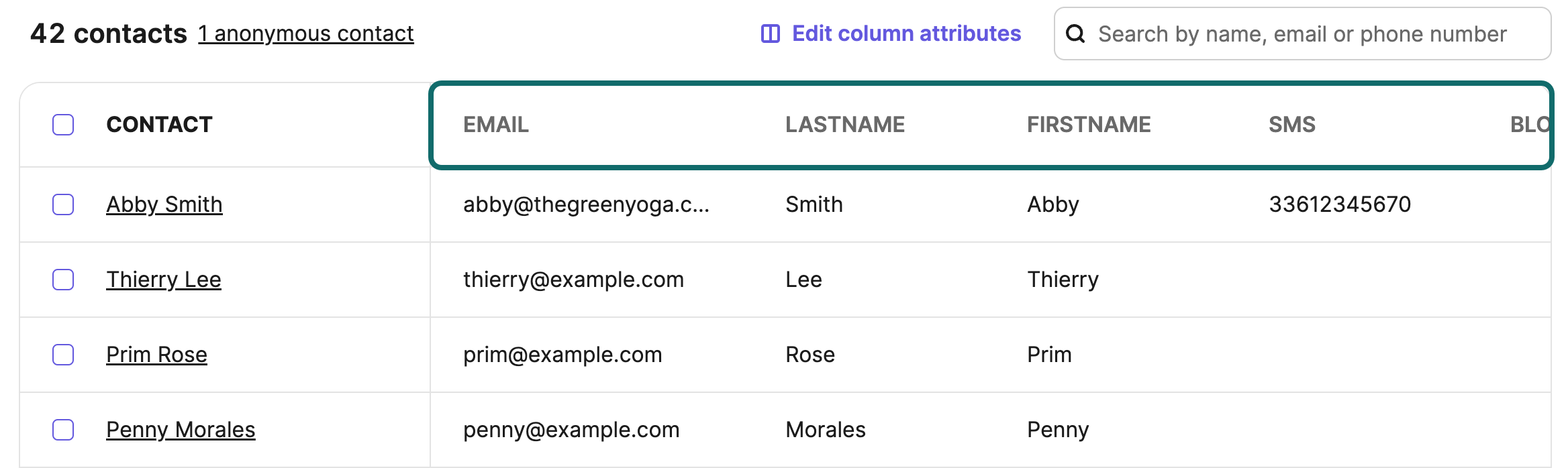 Les attributs de contact sont des champs dans lesquels vous pouvez stocker des valeurs statiques sur vos contacts. Ils peuvent inclure :