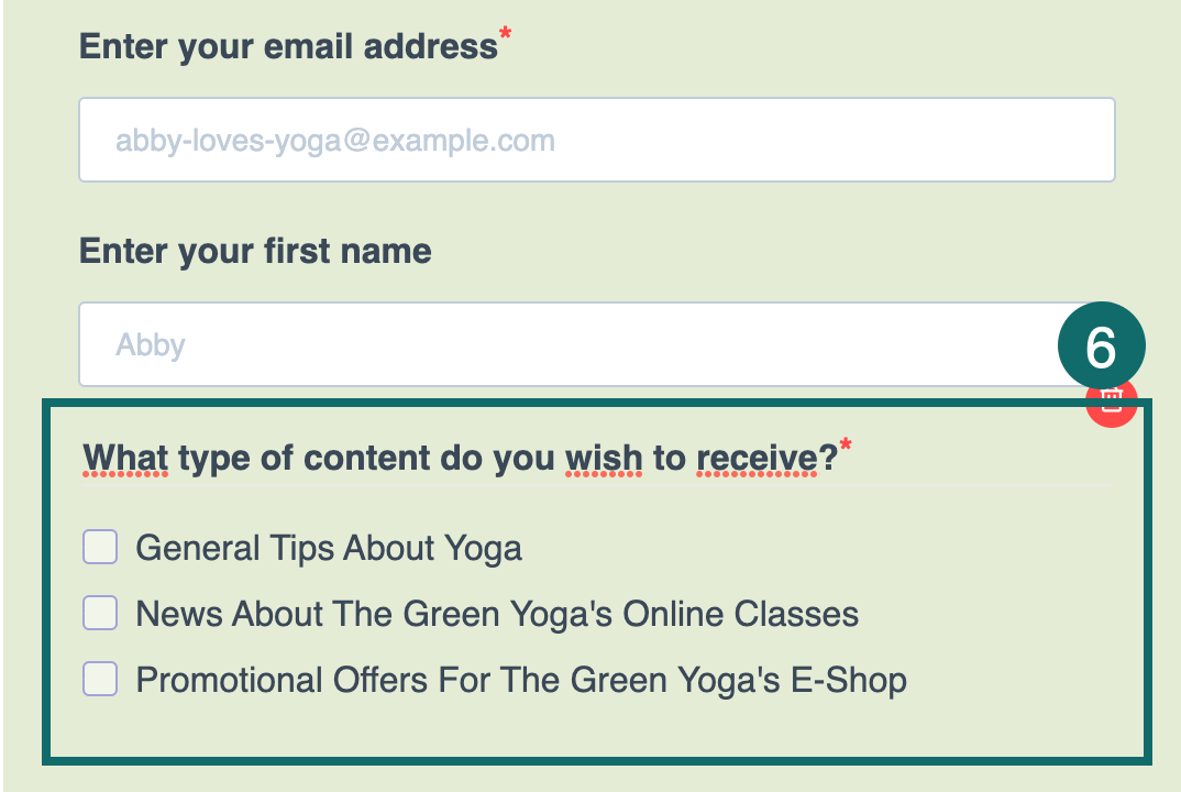 Le bloc d'inscriptions multi-liste est un élément que vous pouvez ajouter à vos formulaires d'inscription et de mise à jour du profil. Cela permet à vos contacts de choisir leurs centres d'intérêt. Chaque choix renvoie à une liste de contacts spécifique que vous avez créée dans Brevo. |