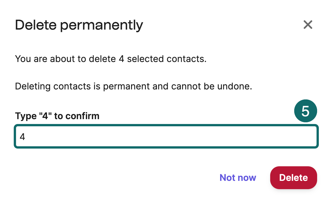 - Saisissez le nombre de contacts sélectionnés pour confirmer.