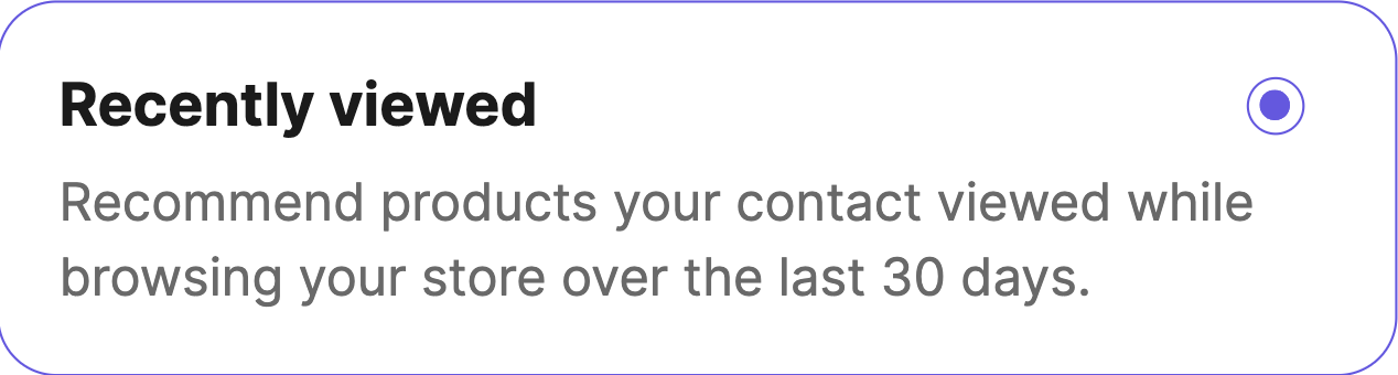 Il feed di prodotto statico è una lista di prodotti selezionati manualmente, che viene mostrata a tutti i contatti. È perfetta per presentare articoli specifici e come backup in caso di problemi con i feed personalizzati. Puoi promuovere alcuni prodotti specifici e inviare messaggi coerenti a tutti i contatti. Ad esempio, durante le festività, puoi presentare articoli selezionati pertinenti nelle campagne email. Tutti i destinatari vedono prodotti identici, indipendentemente dalle preferenze individuali. |