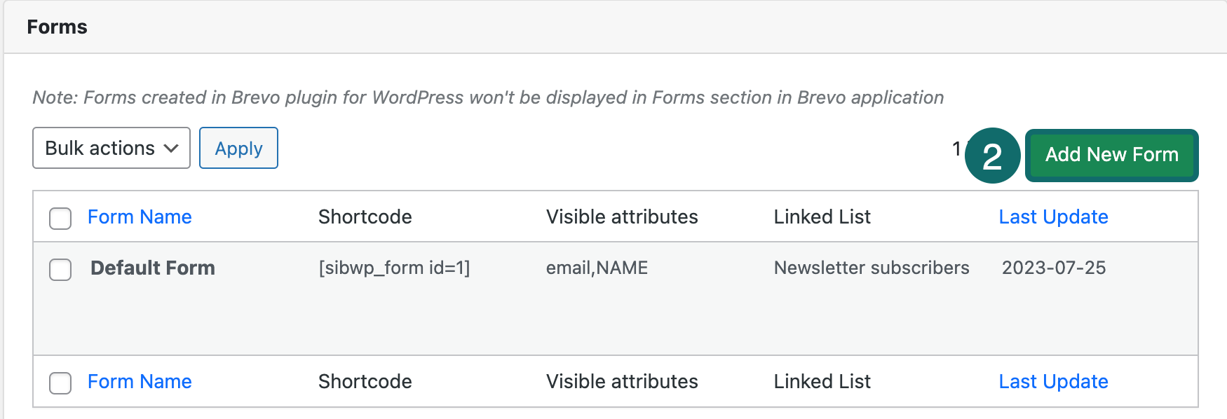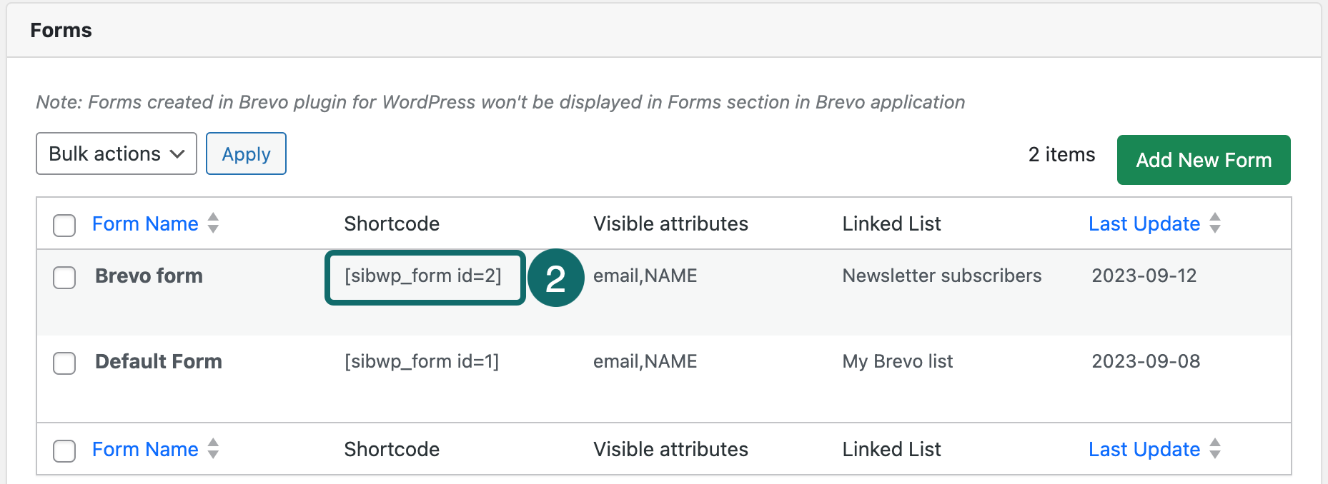 • Crea un modulo statico direttamente tramite il plugin Brevo e incorporalo nel tuo sito WordPress utilizzando uno shortcode