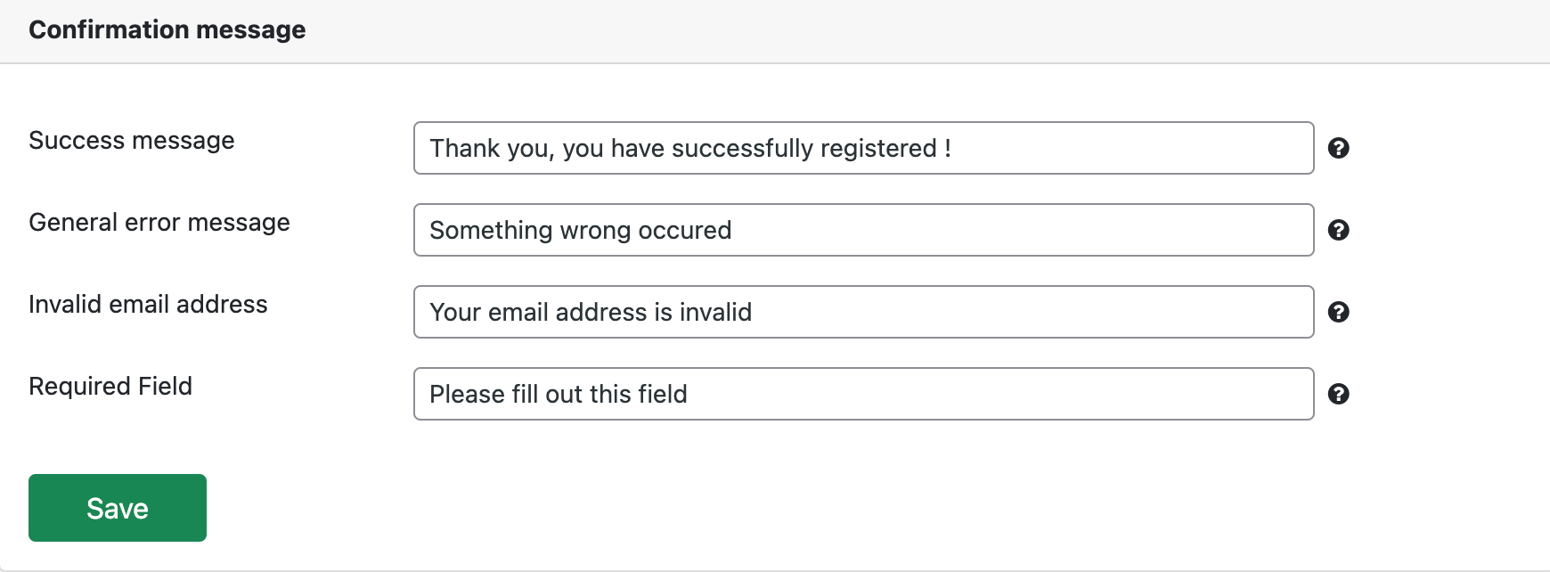 Se hai creato il tuo modulo di sottoscrizione direttamente tramite le impostazioni del plugin e dopo l'invio del modulo viene visualizzata una pagina bianca contenente {"status":"new","msg":{"successMsg":"Thank you, you have successfully registered !","errorMsg":"Something wrong occured","existMsg":"You have already registered","invalidMsg":"Your email address is invalid"},"redirect":""}, significa che potrebbe esserci un conflitto con un altro plugin di terze parti o con un tema WordPress sul tuo sito web WordPress.