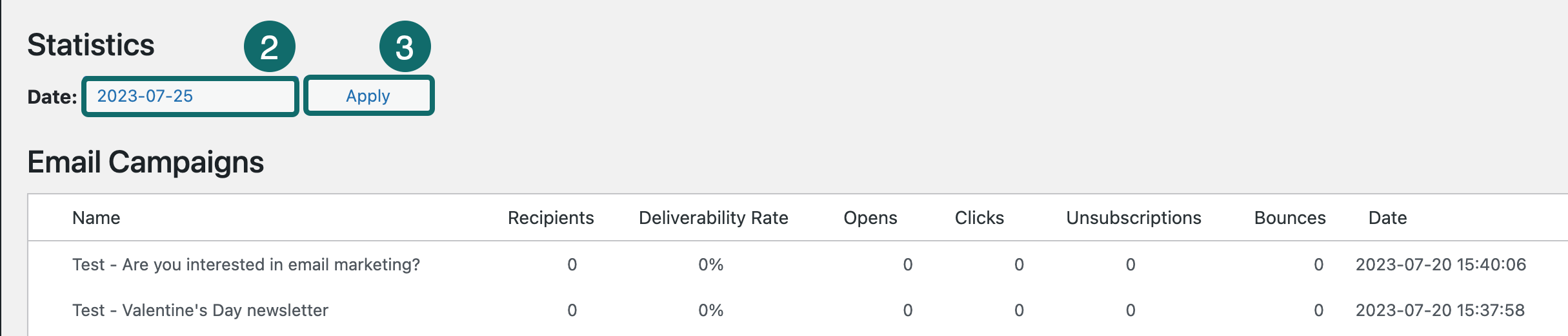 Puoi monitorare le tue statistiche e analizzare le prestazioni delle tue campagne email e SMS (ad es. aperture, clic, disiscrizioni e bounce) direttamente tramite le impostazioni del plugin.